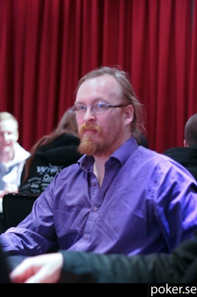 Henrik Karlsson satsar 10 600 på brädan 2♠ 3♥ 4♣ 5♥ och får en all-in från Johan Storåkers rakt i solar plexus för 29 600.
