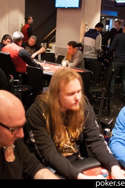 Årets forumanvändare 2010, Oscar Kroon, är här med sitt hår. Just det året kom han faktiskt till finalbordet just här, och i fjol bubblade han. Om trenden står sig lär han alltså åka ut strax före FT.