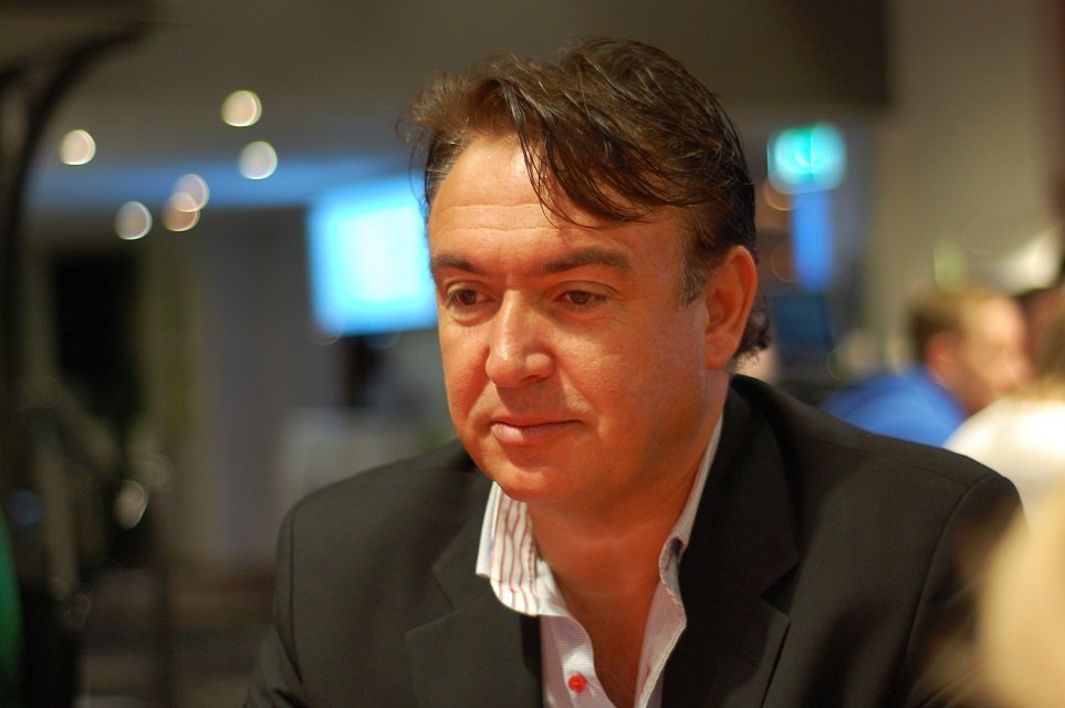 UTG öppnar Vlacho till 7000 på blinds 1200/2400 med ante 200. Fold fram till Löfberg på knapp som frågar hur mycket Vlacho har.