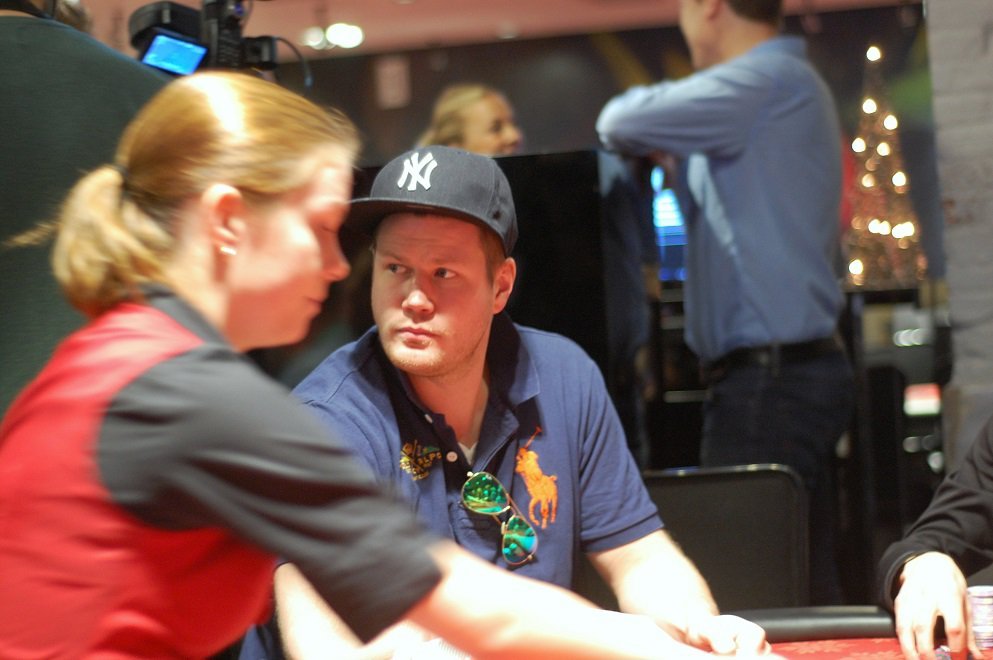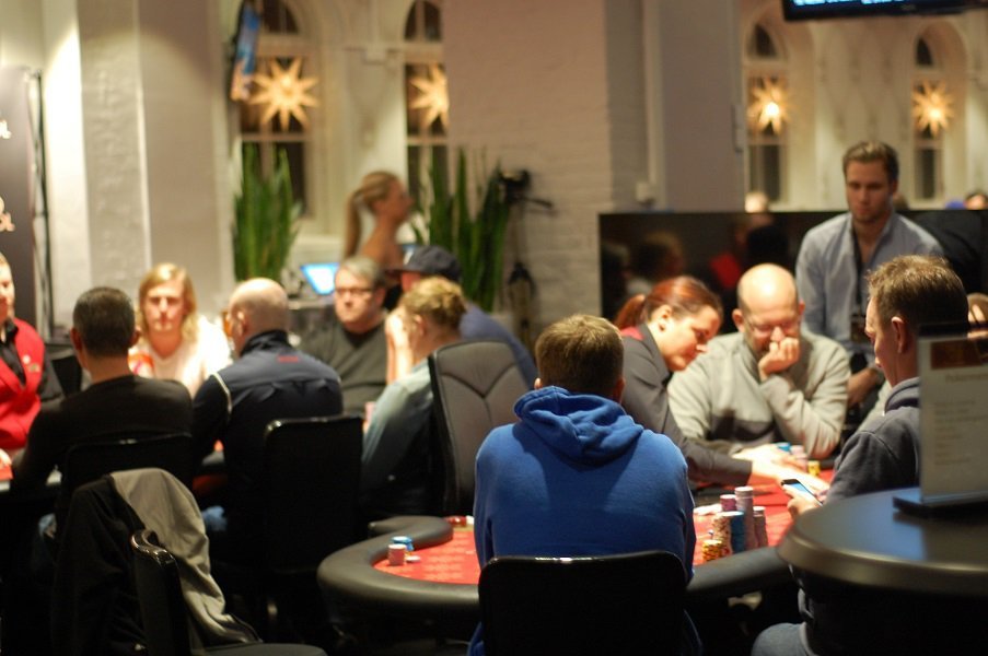 Spelet har stannat av rejält nu. Snittstacken är på drygt 40 big blinds, så det är fortfarande hyggligt djupt. Daniel Erlandsson har bytt bord och sitter nu på Mats Iremarks tidigare plats.