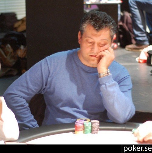 Jens Thorson har tappat och är nu i riktigt dålig form med drygt 10 000 kvar framför sig. Än mindre har Gerasimos Deres, med cirka 8 500 i stacken.