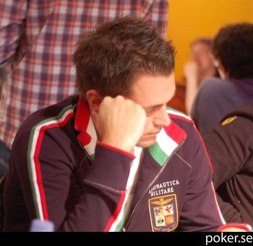 Jag modifierar det tidigare påståendet om att alla svenskar är på samma våningsplan. Än så länge sitter Nichlas Mattsson kvar på det översta våningsplanet, med drygt 30 000 i marker framför sig. Hänger han bara kvar i turneringen lär han vara nere bland de andra innan dagen är över.