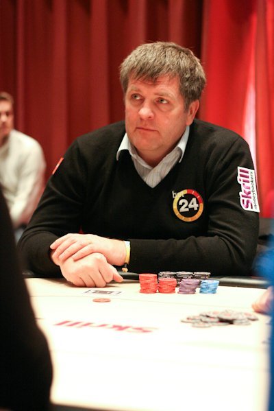 Kenneth Laursen från Danmark, en trevlig fyr som vi träffat några gånger på CC, foldade sig itm och är nog rätt nöjd över att ha nått pengarna med 7 bb kvar.
