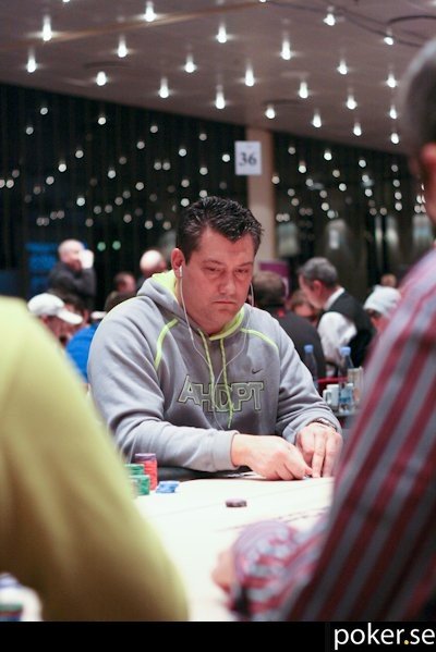 Per Linde är utslagen efter att ha fått in sina sista marker med AJ mot AA. Brädan ändrar inget, och vi minskar svenskcounten med ett.