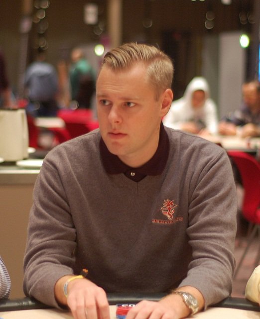 Det torde innebära att tyske Dominik Nitsche, med en LAPT-vinst i bagaget, redan är utslagen. Detta eftersom Jonas Busch Klausen sitter på hans plats och just blev välkomnad till bordet när AA-handen hände.