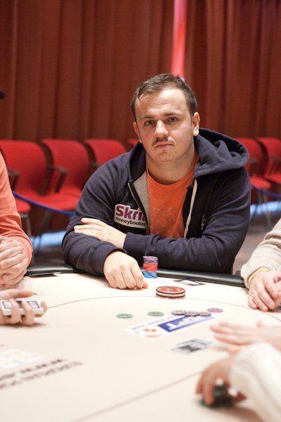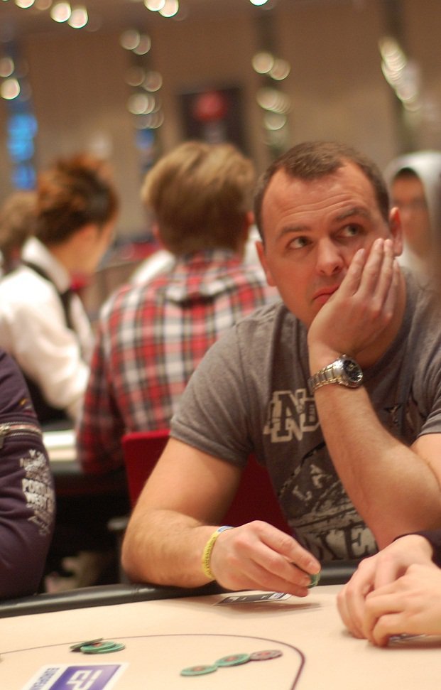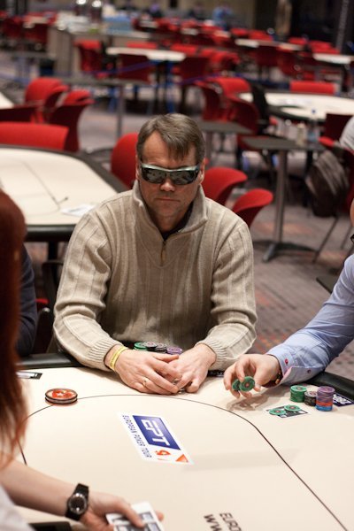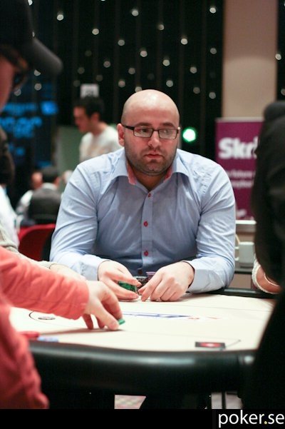 Fredrik Andersson har fått en lite småtuff start och tappat ned till cirka 20 000. Med tanke på strukturen är det emellertid långt ifrån något stort problem än så länge. Han verkar inte heller jättebekymrad själv när vi tittar förbi och kollar läget.