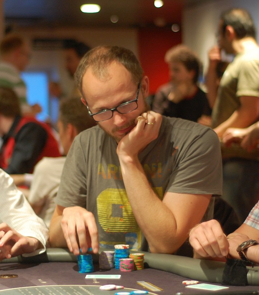 Den här herrn på bord nio har hållit en låg profil hela dagen, men är en av Sveriges 30 mest framgångsrika livespelare sett till inspelade pengar. Daniel Möller hette tidigare Larsson i efternamn, och har bland annat kommit tvåa i en WPT och trea i Master Classics of Poker. Under den svenska nätpokerns storhetstid var han en del av det kända pokerteamet Swedish Santas.