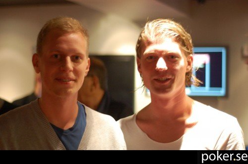 Legendarerna Fredrik Haugen (tv) och Adrian Bussman ärar lokalerna med sin närvaro. Planen är att spela dag 1B imorgon och ägna kvällen åt cashgame "Så högt det bara går".