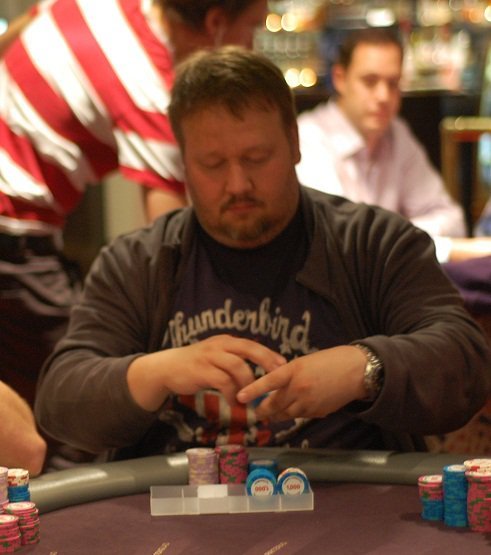 Här sitter inte Stefan Svadäng längre. Efter att bilden togs lämnade Stefan stolen; Han är tyvärr utslagen ur turneringen. Vi närmar oss åttio spelare.