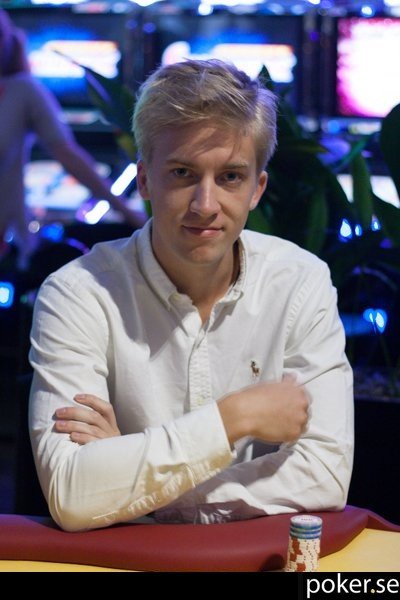 Joachim Olin öppnar till 11 000 och Carl Falk går all-in för runt 75 000. Enkel syn av Joachim.