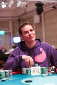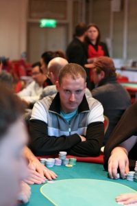 Denne man heter Björn Lundgren. Han har vunnit ett par hundra tusen i liveturneringar, men ingen storvinst än.
