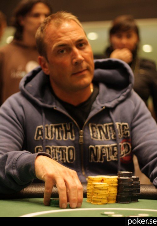 Martin Emanuelsson ställer utg för 350 000, en liten stack med tanke på att mörkarna är 40 000/80 000 just nu. Jeremie Eriksson i big blind synar.
