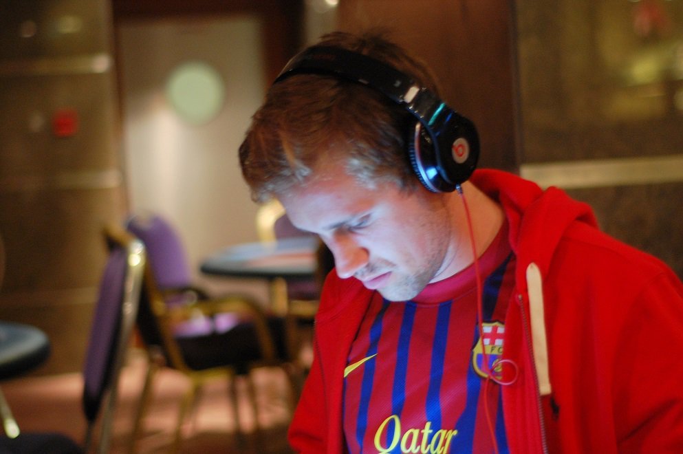 Jacob Öhlund fick in det preflopp med ATo mot Niklas Perssons A5o, och dubblade upp. Öhlund har nu 200 000, och Persson knappt 50 000 efter handen.