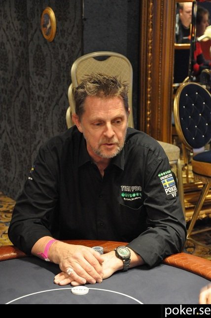 Dan Glimne är med och spelar idag och verkar vara på gott humör! Han tog precis hem en liten pott mot Johan Storåkers efter följande hand. Bet 275 av Glimne och syn av Johan. De byter ett kort vardera och check av Johan. Dan betar då 600 och tar hem potten.