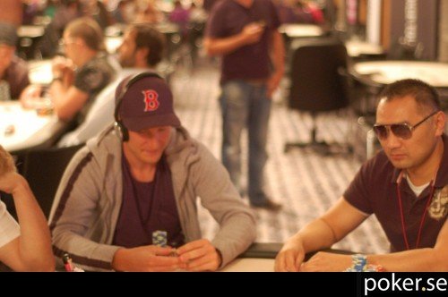 Christian Jeppsson och Thomas Larsen sitter numera bredvid varandra i €1000 NLH. Med 28 spelare kvar är de nu också i pengarna. Grattis säger vi på Poker.se, och Jobba vidare!
