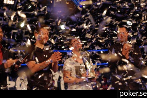 Spelet är igång igen. Blinds 60 000 / 120 000 med ante 20 000.