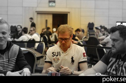 Björn Lundgren är just nu den mest shortstackade av svenskarna, men har fortfarande över 20 big blinds kvar. Han har varit klart mer illa ute än så här under tidigare stadier i turneringen.