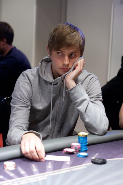 Björne Lindberg och Mattias Bergström ser floppen 5♦7♦9♠ tillsammans. Björn betar 13 500, och Mattias synar.