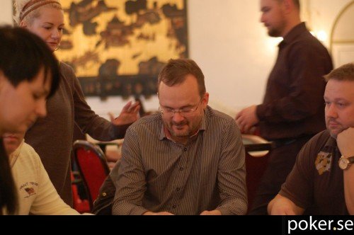 Ola Brandborn är en verklig veteran inom svensk poker och även en före detta medarbetare på Poker.se. Hans plan är att spela alla officiella SM-event under veckan utom highrollern. Till höger på bilden ser vi örebroprofilen Stefan Svadäng, och i bakgrunden Svenska Pokerförbundets Lina Olofsson.