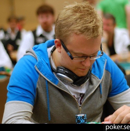Emil Mattsson, en av få svenska spelare som går skapligt just nu. Han har 90 000 i stacken. Viktor Wessmans AK sprang in i KK. Han har fallit från 60 000 till 25 000, men var å andra sidan nere på 11 000 tidigare idag. Ungefär lika mycket, 25 000, har även Daniel Erlandsson och Christian Jeppsson.