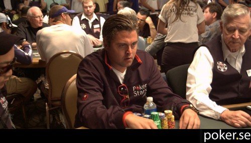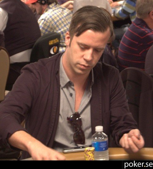 Vi avslutar dagens rapportering med en bild på den här killen. Han satt till vänster om Anton Wigg, och inledde dagen med knappt 10 000 i marker. Han går in i dag tre med knappt 7 000 i marker. Här snackar vi survival mode.