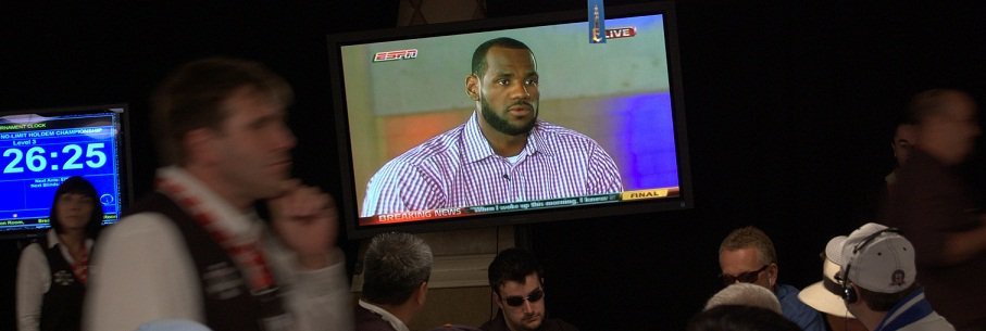 Över till Amazonrummet. Här börjar spänningen stiga när basketikonen LeBron James dyker upp på storbildsskärmarna. Han ska tillkännage vilken som blir hans nya klubbadress. När han säger ”Miami” blir det ett väldigt liv i salen. Ämnet är en uppenbar vattendelare som spelarna verkligen har olika åsikter om.