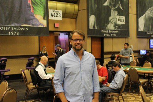 I korridoren sprang jag på Jamie Gold som gärna ställde upp på ett foto. Gold har ibland mer förtjänt, och ibland mer oförtjänt, fått en hel del kritik genom åren både för att ha ansetts varit en av de sämre spelarna som vunnit main, och för en bitvis douchig approach. Numera är han en rätt lågmäld och sympatisk ambassadör för spelet. Det är för övrigt i år tio år sedan han vann det största main event som hittills spelats sett till startfält. Nästan 9000 spelare kom till start. Gold har relativt ouppmärksammat också fortsatt leverera en del fina liveresultat då och då; för några månader sedan tog han sin näst största cash i karriären, $140 000, när han kom tvåa i ett stopp på World Series ambulerande tour WSOP Circuit.
