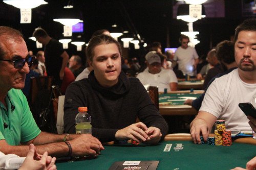 Patrick Nordgren var en av svenskarna vi missade under första dagens spel. Jag pratade kort med honom innan spelstart, och han berättade att han inte spelat mycket live utöver lite inhopp på kasinot i Malmö. Detta är hans första main event, och han tog sig igenom första dagen med ungefär det han började turneringen med.