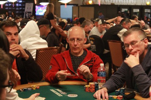 Vi är tjugo minuter in på dagens sista period. Blinds är 800 / 1600 med ante 200.