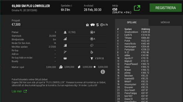 I Event #2 PLO Lowroller kom 150 spelare till start vilket var något mer än föregående år och en respektabel siffra så en bra start på SM.