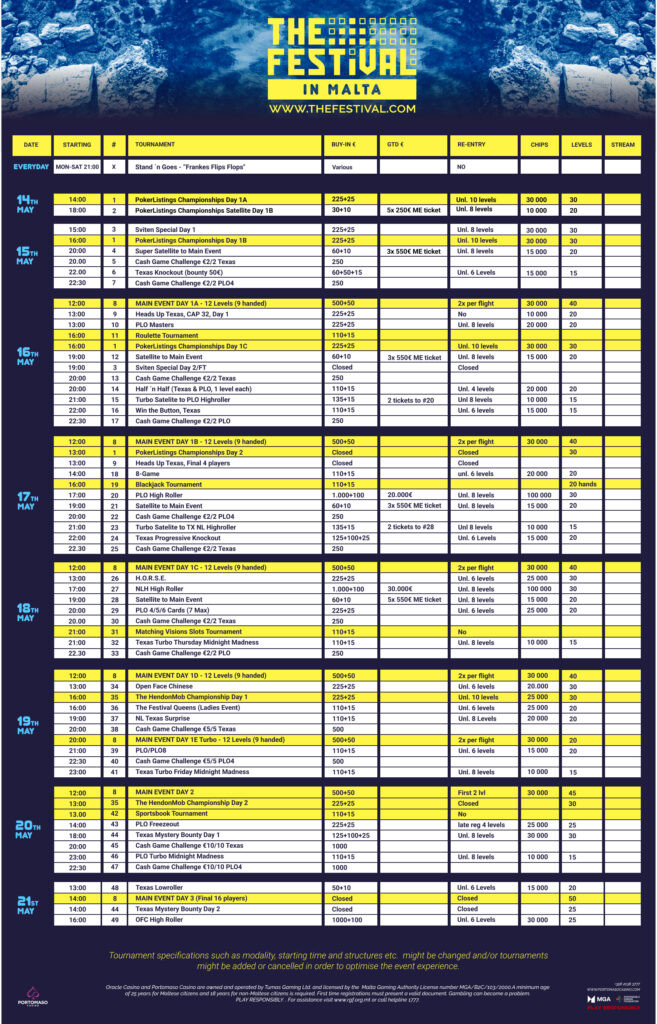 Du har med andra ord alla möjligheter i världen under veckan att säkra ditt paket till The Festival under maj månad för att sola, bada och spela poker på Malta tillsammans med en vän då paketen innehåller hotell för två personer.