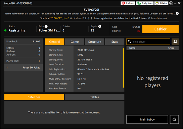 -1 inköp till Poker-SM Main Event