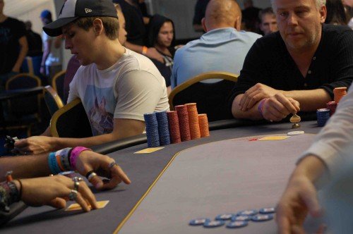 Timothy Härold har fått den start han önskat sig. Han får in det preflop med :Ky::Ky: mot :Ay::Ay: och kungarna får stå!