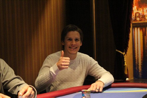 Joel Fritz från Norrtälje gick bäst av alla spelare under första startdagen av Poker-SM live 2015 på Malta. Totalt gick 39 av 95 spelare vidare från dag 1A.