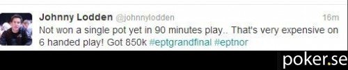 Johnny Lodden slog igenom stort som ett internetfenomen för några år sedan, men har lyckats fortsätta att synas genom att även prestera stabilt live, med flera höga EPT-placeringar varav ett finalbord och en sjuttondeplats i Monte Carlo. Han är även ensam (?) norrman om att komma tvåa i svenska mästerskapen och är känd för att ha gulat ett par gånger i karriären genom att fullständigt ignorera bankrollkrav vid poker och sports betting.